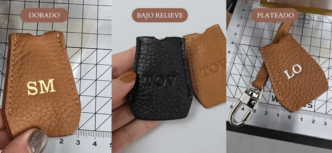 La personalización se realiza sobre el TAG, en bajo relieve, dorado o plateado.